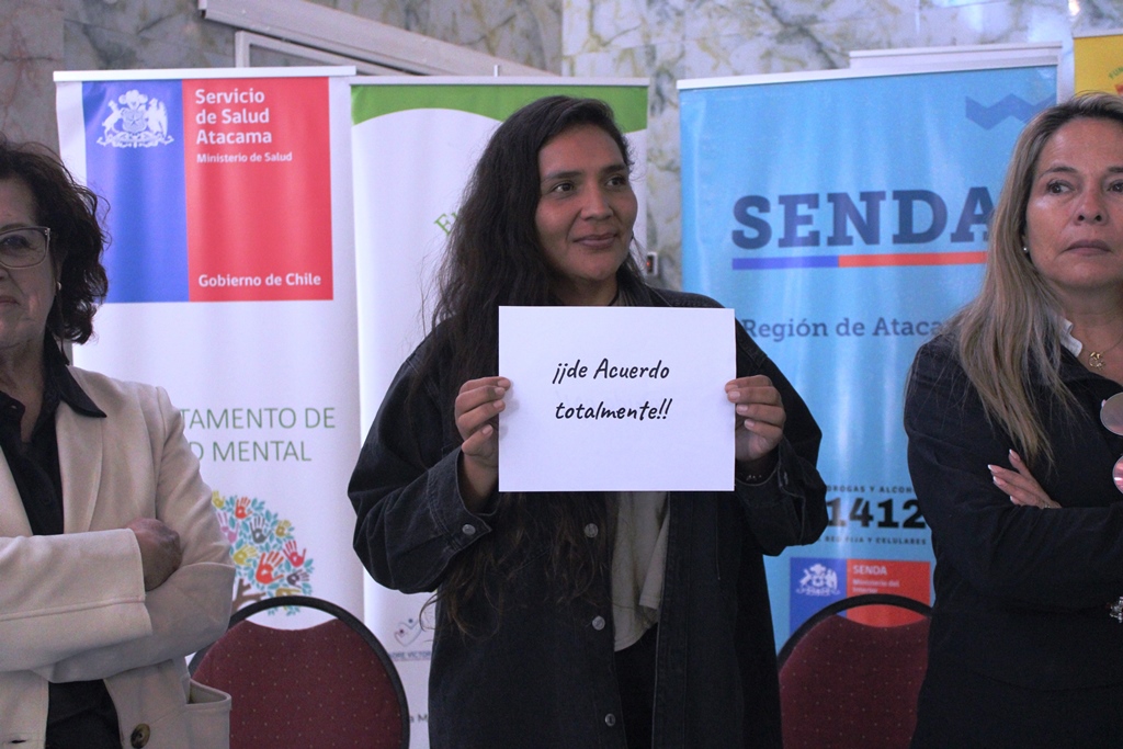 La jornada contó además con la presencia de autoridades y representantes institucionales, entre ellos Jorge Alfaro, presidente del directorio de Fundación Despertar; Bárbara Araya, asesora del Departamento de Salud Mental del Servicio de Salud Atacama; Martha Palma, directora regional de SENDA Atacama; María Victoria Ortiz, encargada de Tratamiento de SENDA; y Carlos Rojas, gestor de Calidad de SENDA.