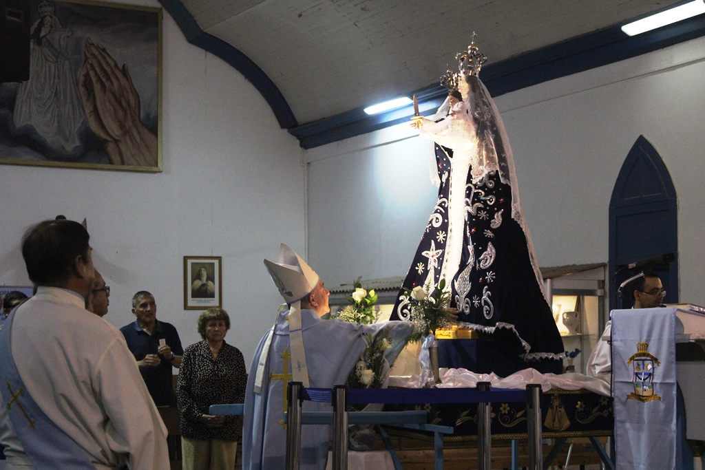 Una cifra que supera las doscientas personas conforma el grupo de voluntarios que estarán participando en los distintos servicios del Santuario durante la Fiesta de La Candelaria de Copiapó. Estos voluntarios celebraron la misa de envío, junto al obispo, Mons. Ricardo Morales, y el rector del Santuario, p. Francisco Javier Medina, la noche de este miércoles 28 de enero en el templo.