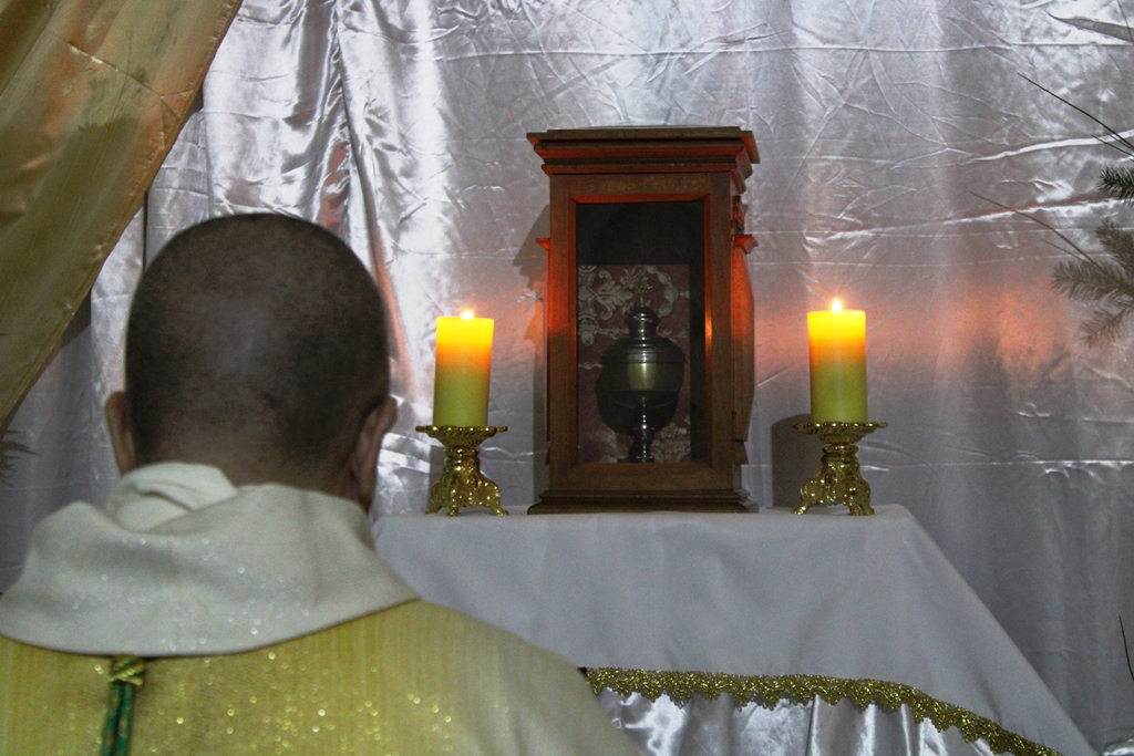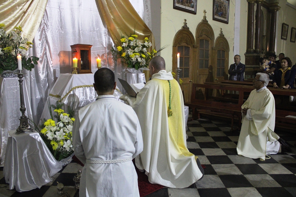 La Misa terminó con la Oración ante el Santísimo, ubicado en una de las naves laterales de la Catedral donde la comunidad pudo estar en oración.