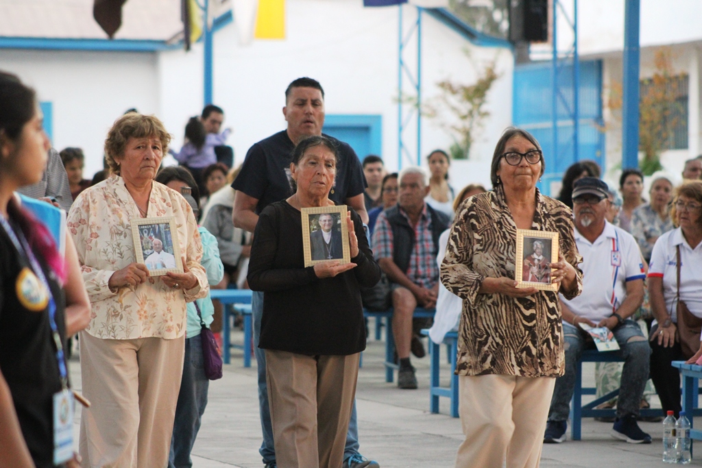 En el momento del ofertorio, se llevaron al altar las fotos y estolas de tres queridos pastores que han partido al encuentro del Señor en el último mes: el obispo emérito, Mons. Gaspar Quintana, el sacerdote Aquiles Altamirano, que fue rector del Santuario por trece años, y el diácono del Santuario, Juan Manuel García. Un momento emotivo de memoria agradecida.