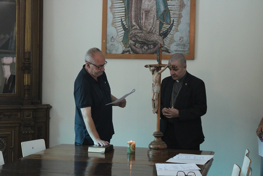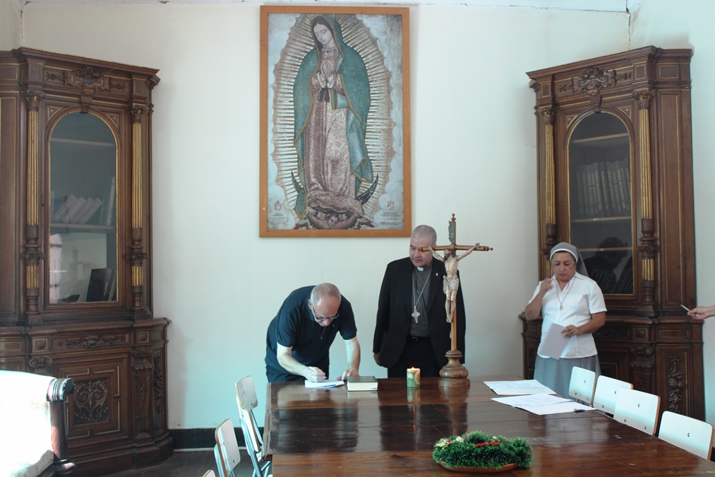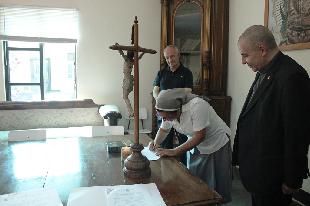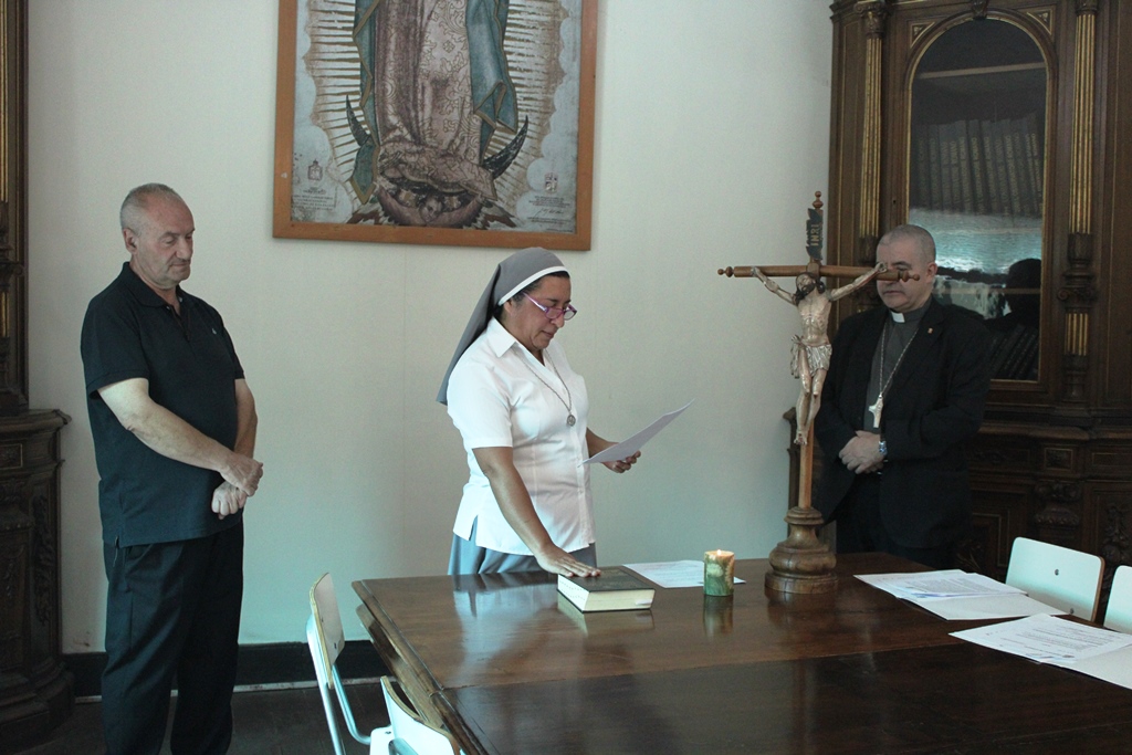 Con la firma de los documentos oficiales y el cariñoso saludo de parte del obispo y de los funcionarios de la curia que estuvieron presentes, el p. Guido y la Hermana Verónica asumieron ya estos nuevos cargos.