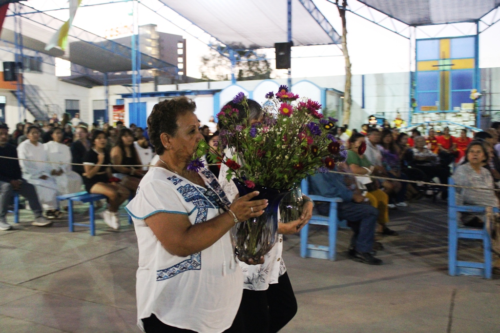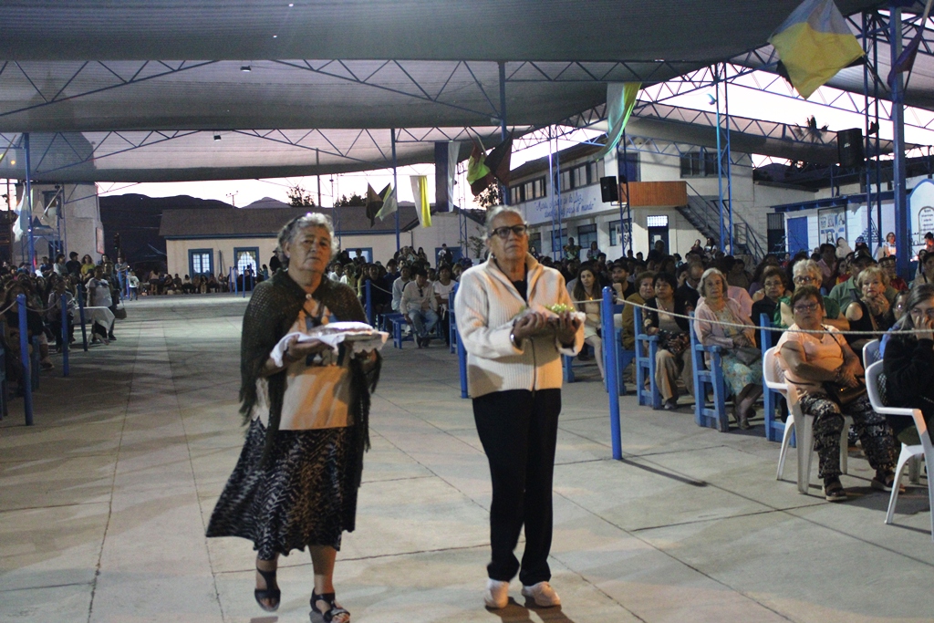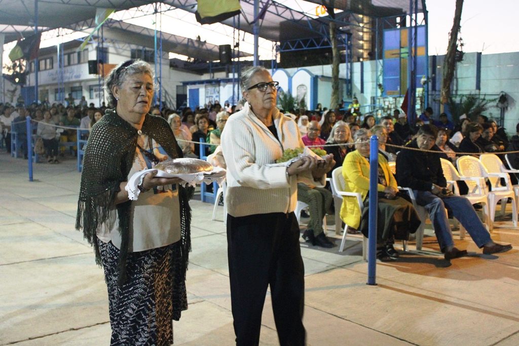 Durante el ofertorio, mujeres presentaron uvas y pan, junto a dos ramos con 47 flores, una por cada mujer asesinada en Chile en el último año por violencia intrafamiliar, los que fueron colocados a los pies de la imagen de la Virgen como signo de oración y memoria.