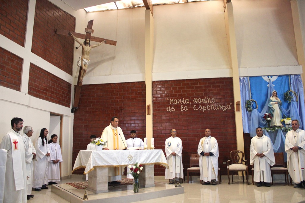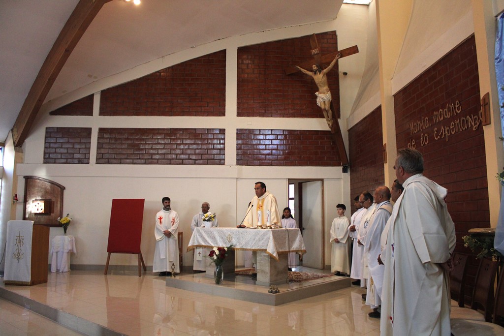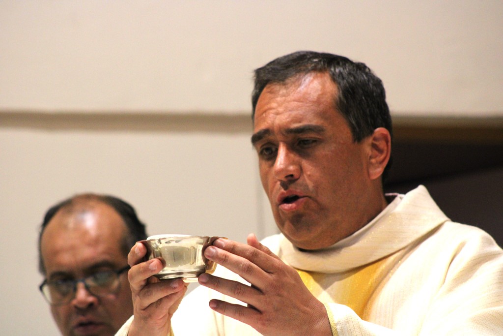 En la misa lo acompañaron los sacerdotes Gabriel Horn, René Cabezón y Rafael Domínguez, de los Sagrados Corazones, que viajaron desde Diego de Almagro para la ocasión. También sus compañeros de seminario, padres Mauricio Arancibia desde Vallenar, y Francisco Javier Medina, y el diácono Ricardo Rojas, quien lo conoce “desde niño”.